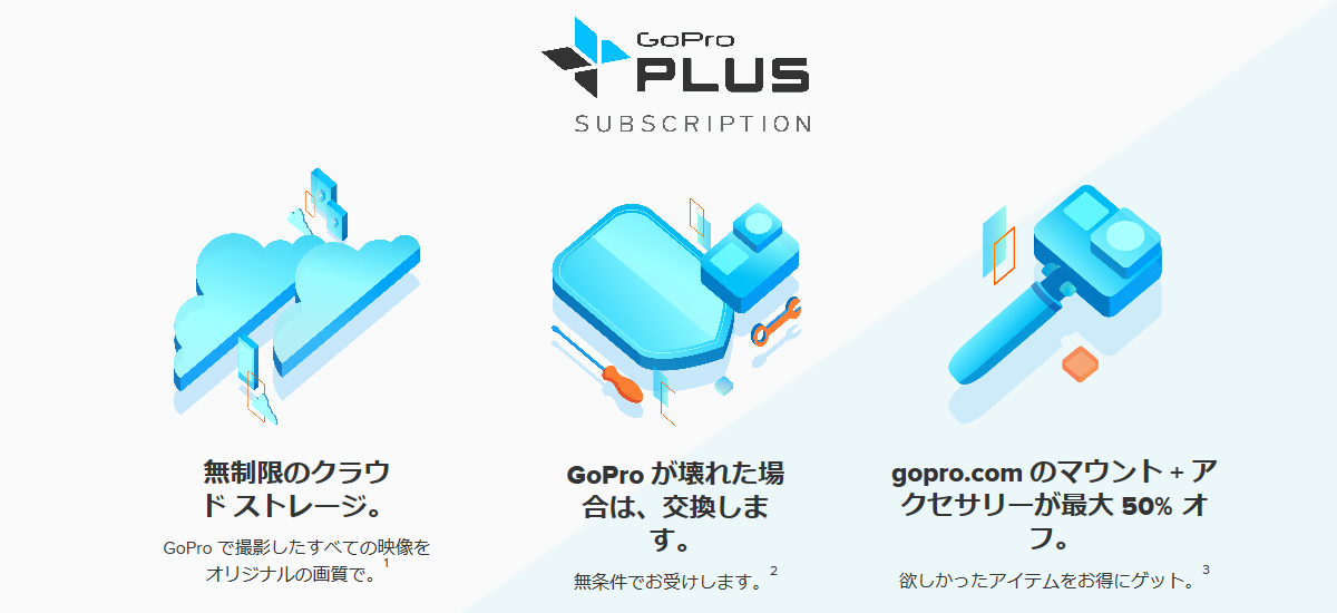 GoPro Plusの特典は、以下の3つ。